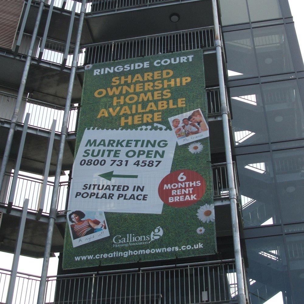 Our Mesh PVC material is ideal for use on scaffolding or large building wraps, as well as Heras Fencing Banners and Crowd Control Barriers.