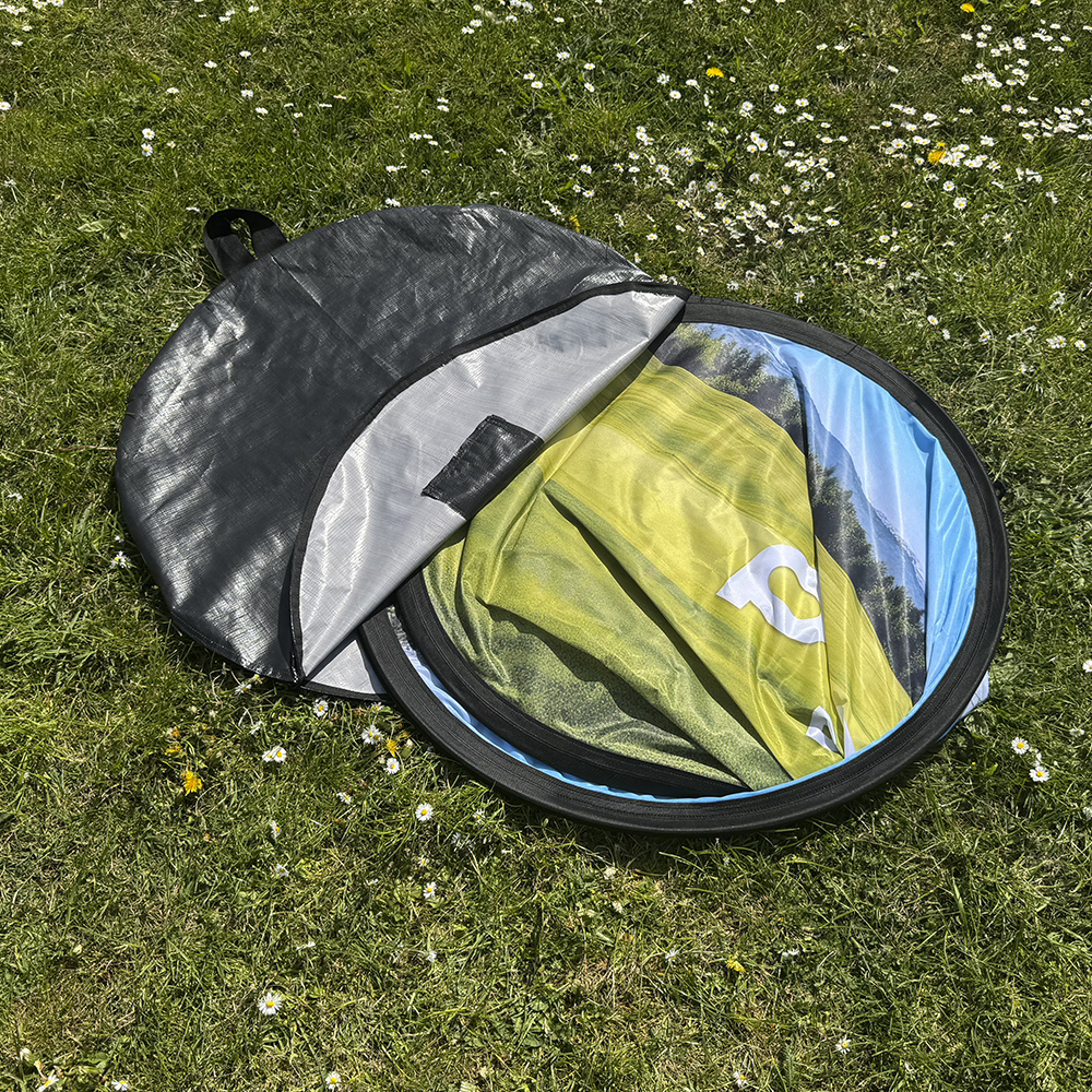 Supplied with graphic, ground pegs and carry bag ready to go.