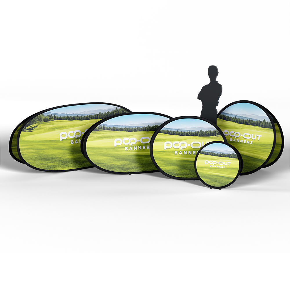 High-quality sprung fibreglass rods with graphic printed onto Knitted Polyester. Banners twist down and pack away into a carry bag.
